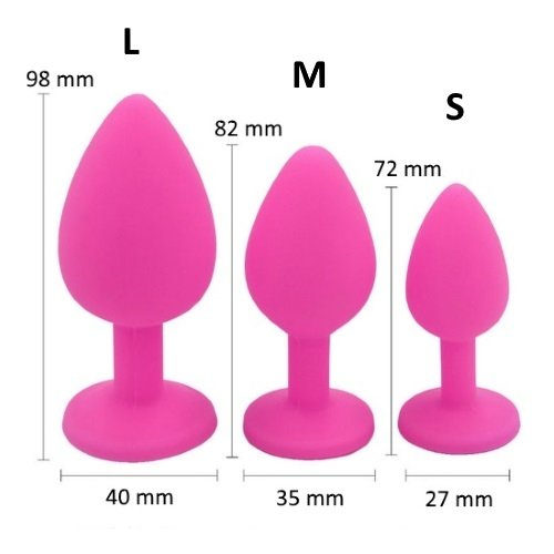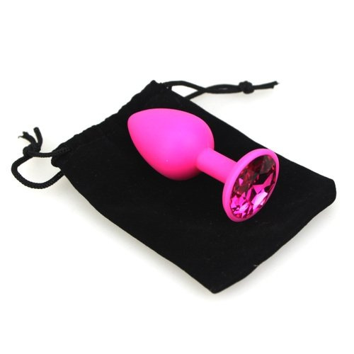Anální kolík střední velikosti, vyrobený z růžového 100% silikonu. V základně kolíku je zasazený třpytivý diamat, který ozdobí Váš zadeček. Kolík dodáván v černém plyšovém sáčku.