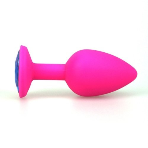 Silikonový anální kolík Medium Diamond růžový (modrý kamínek)