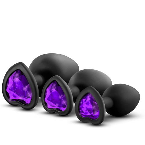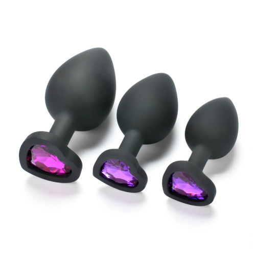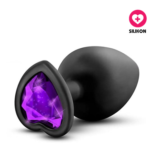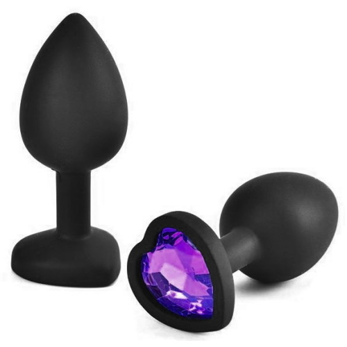 Silikonový anální kolík Small Heart černý (fialový kamínek)