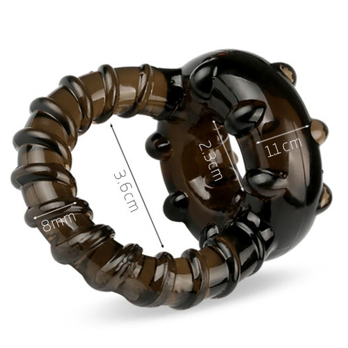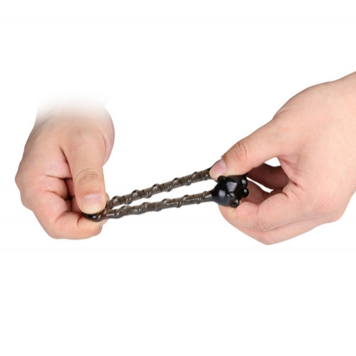 Dvojitý erekční kroužek, vyrobený z elastického černého gelového materiálu. Menší smyčku natáhnete ke kořeni penisu a větší smyčku přetáhnete přes varlata. Takto dokonale zaškrcený penis udrží perfektní erekci a prodlouží Vaši výdrž.