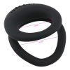 Dvojitý erekční kroužek pěkného designu, vyrobený z tužšího černého silikonu. Menší smyčku natáhnete ke kořeni penisu a větší smyčkou přetáhnete přes varlata. Takto dokonale zaškrcený penis udrží perfektní erekci a prodlouží Vaši výdrž.