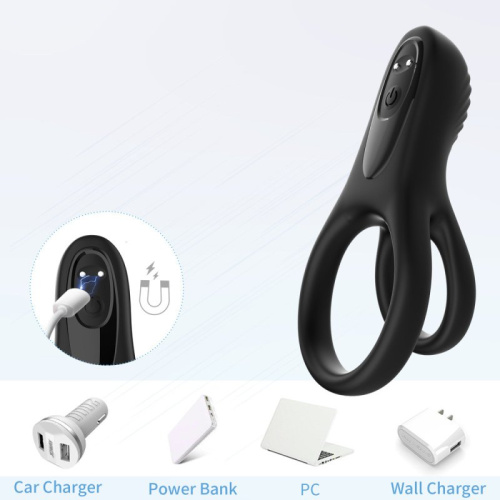 Voděodolný, dvojitý, erekční kroužek vyrobený z černého 100% silikonu, disponující 9 druhy různých vibrací. Kroužek nasadíte na kořen penisu a velkou smyčku přetáhnete přes penis i varlata zároveň, čímž se dokonale stabilizuje poloha výčnělku pro klitoris. Takto dokonale zaškrcený penis udrží perfektní erekci a prodlouží Vaši výdrž. Pro svůj provoz nepotřebuje žádné baterie, jelikož napájení obstarává lithiový akumulátor, který se nabíjí prostřednictvím přiloženého USB kabelu.