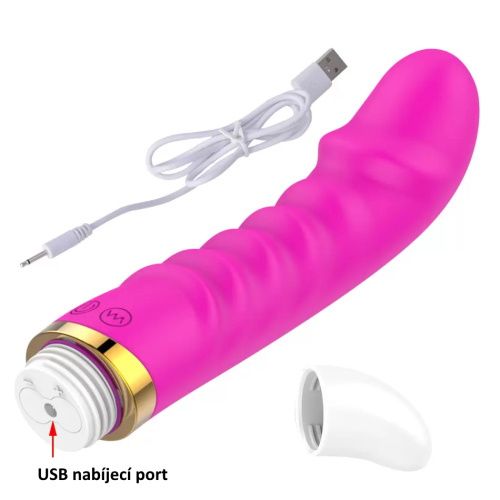 Voděodolný vibrátor s moderním designem, disponující 12 druhy vibrací. Jeho tělo je vyrobené z hebkého růžového 100% silikonu a ABS plastu. Napájen je lithiovým akumulátorem, který je možno dobíjet přes USB kabel, který je součástí.