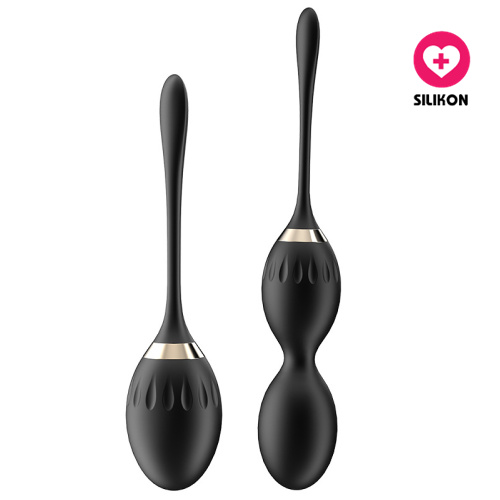 Sada Venušiných kuliček vyrobených z černého 100% silikonu. Uvnitř každé z kuliček se nachází menší ocelová kulička způsobující při pohybu silné vibrace. Šňůrku tvoří smyčka pro snadné a bezpečné vytahování. Perfektní pro posílení pánevního dna, zejména u žen po porodu, či příjemnou stimulaci vagíny.