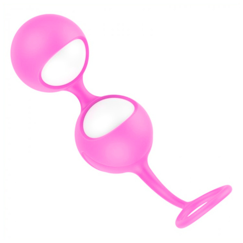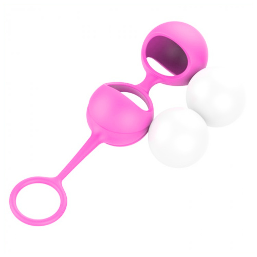 Venušiny kuličky s dvěma míčky, kombinace světle růžové a bílé barvy vyrobené ze 100% silikonu a lékařského ABS plastu. Uvnitř každé z kuliček se nachází menší ocelová kulička způsobující při pohybu silné vibrace. Na konci šňůrky je očko pro snadné a bezpečné vytahování.