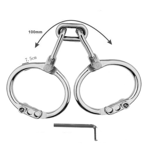Profesionální ocelová pouta, vyrobená z poctivé silné ocele. Jedná se o bez zámkový systém, kdy k uzamčení slouží imbusový klíč, přičemž utažený šroub není možné pouhou rukou povolit. Pouta nabízejí 3 různé nastavitelné průměry, takže mají univerzální velikost. Pouta nabízejí 3 různé nastavitelné průměry, takže mají univerzální velikost. Váš protějšek se z nich bez Vašeho svolení nebude mít šanci dostat. Chladivý kov a pocit bezmocnosti vzbudí ve vás nesmírný pocit vzrušení.