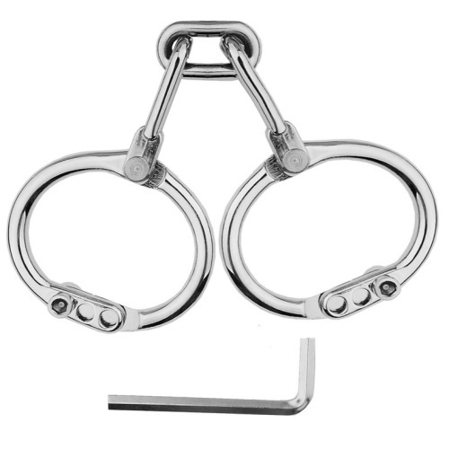 Profesionální ocelová pouta, vyrobená z poctivé silné ocele. Jedná se o bez zámkový systém, kdy k uzamčení slouží imbusový klíč, přičemž utažený šroub není možné pouhou rukou povolit. Pouta nabízejí 3 různé nastavitelné průměry, takže mají univerzální velikost.