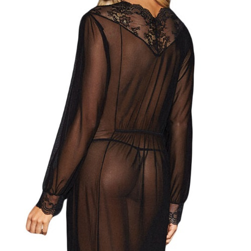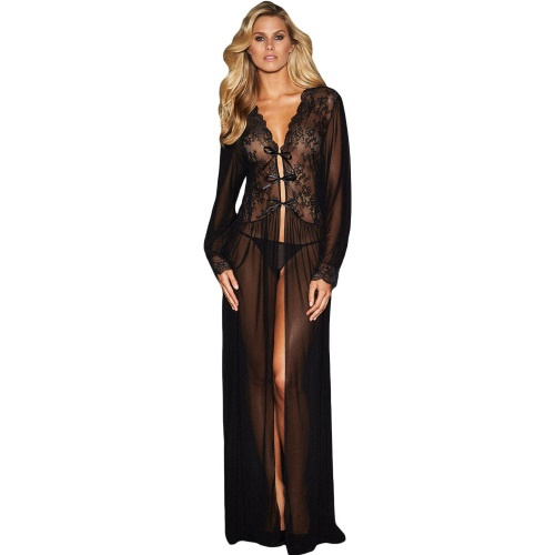 Dámský župan Sheer Long Sleeve Lace Robe with Thong