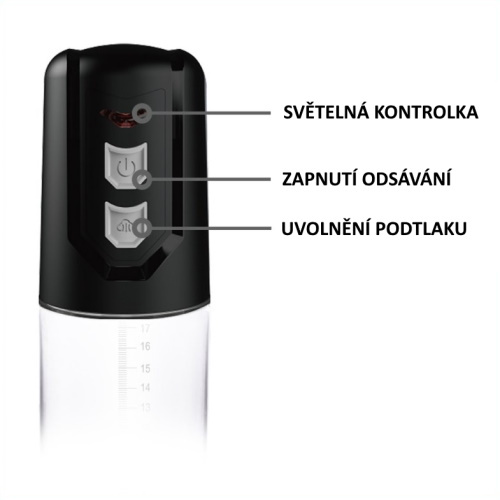 Tichá automatická vakuová pumpa, která má silný výkon, rychlý odvod vzduchu a velice jednoduché ovládání pro automatické odsátí vzduchu a opětovné uvolnění podtlaku. Vnitřní užitná délka pumpy je 183 mm a vnitřní průměr cylindru je 60 mm. Elektrická část je odnímatelná, pro snadné čištění. Těsnící manžeta je elastická a podřídí se průměru penisu.