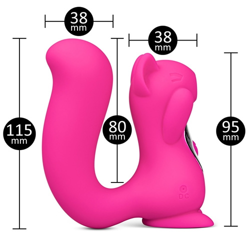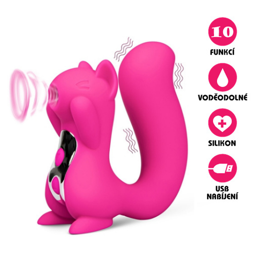 Vakuový, voděodolný vibrátor s netradičním designem ve tvaru roztomilé veverky. Vibrátor je vyrobený z růžového 100% silikonu a disponuje dvěma motory, které nabízejí 10 druhů vibrací a funkci sání klitorisu či bradavek. Napájen je Li-Ion akumulátorem, který je možno dobíjet přes USB kabel, kterým je součástí.