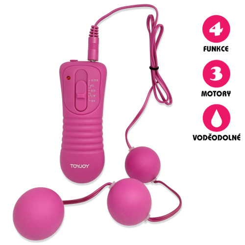 Voděodolné, vibrační venušiny kuličky, vyrobené z hypoalergenního růžového ABS plastu. Tyto kuličky nabízení 4 druhy intenzity a disponují třemi extra výkonnými motory. O napájení se starají dvě klasické tužkové baterie (AA), které však nejsou součástí. Vzhledem k extrémní síle vibračních motorů se jedná a výborného pomocníka k navození skvělého pocitu rozkoše, maximální stimulaci vagíny a posílení pánevního dna.