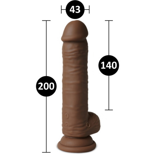 Voděodolný, extra realistický vibrační penis, disponující deseti funkcemi a rotací, vyrobený ze 100% silikonu hnědé barvy. K jeho provozu nepotřebujete žádné baterie, jelikož v penisu je zabudovaný lithiový akumulátor. Nabíjení probíhá připojením USB kabelu, který je součástí. Základna penisu obsahuje dvě ovládací tlačítka a přísavku, díky které můžete penis přicucnout na hladký porvch a bezpečně na něj nasednout.